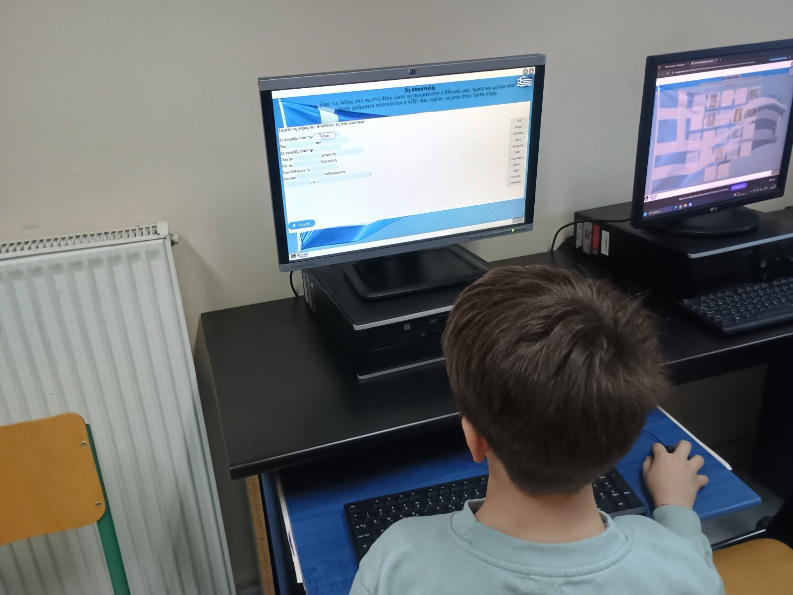 άσκηση τοποθέτησης λέξεων στη σωστή σειρά για τη δημιουργία στίχων από τον Εθνικό ΎμνοΜέσα από το παιχνίδι, οι μαθητές εξάσκησαν τη μνήμη, την παρατηρητικότητα και τη συνεργασία τους, ενώ παράλληλα αξιοποίησαν δημιουργικά τις ψηφιακές τεχνολογίες.